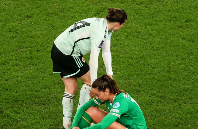 The atmosphere punctured. The killer blow. Gleeson made her first substitutions of the night five minutes later, a triple change of Leanne Kiernan, Megan Connolly and Megan Campbell, while Wales did their utmost to run down the clock. An unpopular pitch invader did so too.