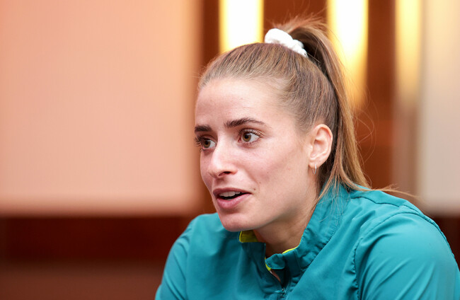 Vera Pauw speak to the media. Laszlo Geczo / INPHO
