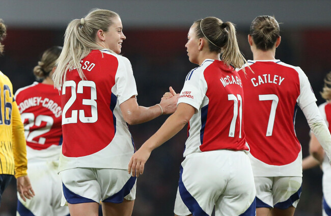 The Gunners were ahead after just 13 minutes when England winger Beth Mead cut inside and fired past keeper Sophie Baggaley and Caitlin Foord doubled their advantage nine minutes later when she converted Kim Little’s cross.