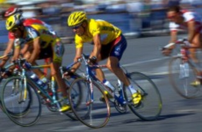 Lance Armstrong in Paris in 1999, about to claim his first Tour de France. An Irish aide states in an affidavit that she bought concealer so that Armstrong could cover a bruise on his arm, caused by a syringe, days before the race began. INPHO/Allsport