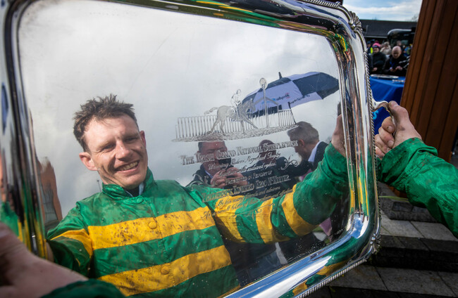 Paul Townend celebrates winning the Irish Grand National with I Am Maximus. Morgan Treacy / INPHO