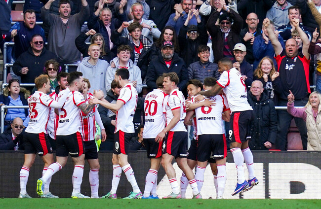 Saints sought a quick reply and went close as Harwood-Bellis nodded Manning’s free-kick wide of the post as the wind swirled around St Mary’s.