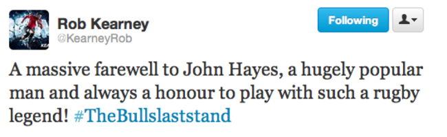Tributes have been pouring in for John Hayes after the Limerick man played his 212th and final game in Munster colours on Monday evening.