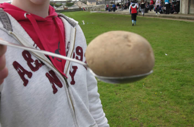 “The egg-and-spoon race actually being a potato-and-spoon race. This actually happened at my school. Potatoes instead of eggs.”