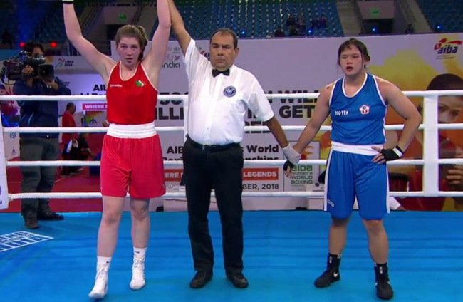 The Belfast featherweight was awarded a 4-1 split-decision victory over her opponent to set up a last-16 clash with 2016 world champion Alessia Mesiano of Italy on Monday.