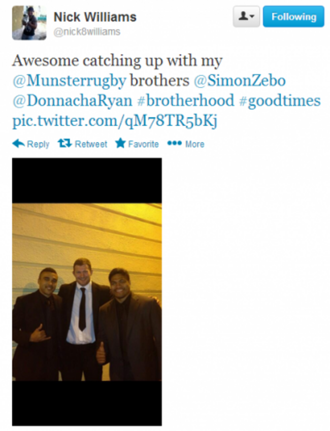 Paul O’Connell, after stopping to sign a Lions jersey or three, sought out Ulster lock Iain Henderson and hooker Rory Best for a chat. Ian Madigan’s flouncing quiff was becalmed for the night as he dealt with a greater deal of attention than he would have received last season. Williams, who also won the RaboDirect Pro12 Player of the Year prize on Sunday, caught up with some of his Munster ‘brothers’: