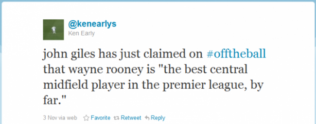 During Wednesday’s Champions League tie, Ken Early– Newstalk’s football corresdpondant– waited only a matter of minutes before making a pejorative comparison between Rooney and Liverpool’s captain.