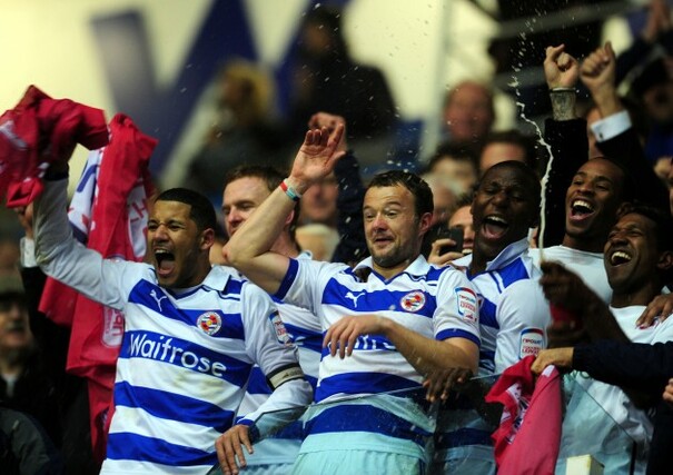 • Noel Hunt and Jobi McAnuff lead the celebrations as Reading seal promotion to the Premier League.