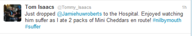 At least one Welsh player, Ospreys’ scrum-half Tom Isaacs, has decided to embrace humour rather than pessimism concerning the season ending injury to Roberts and the upcoming travails of Cardiff Blues.