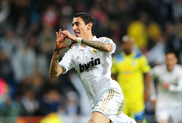 • Real Madrid's Angel Di Maria celebrates after scoring his side's fifth goal of the night against APOEL