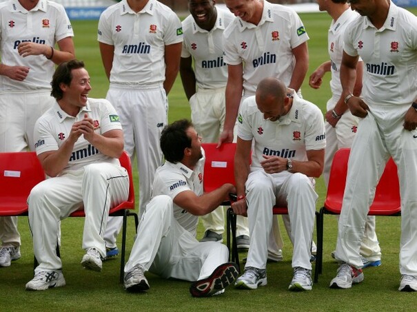 • Essex's Mark Pettini falls off his chair before a team photo