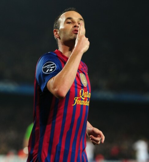• Barcelona's Andres Iniesta celebrates scoring the third goal against Milan
