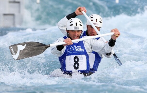 • David Florence (left) and Richard Hounslow during a training session at the Lee Valley White Water Centre