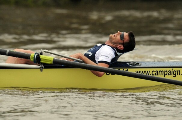 • Dr Alexander Wood appears to be unconscious after his exertions in the Boat Race.