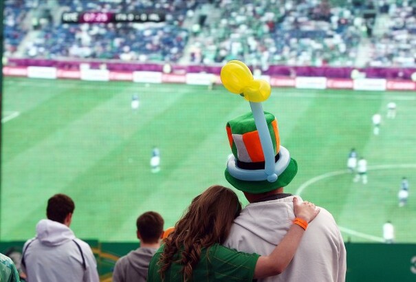 Laura and Robert Kane from Ballyfermot watching the match on the big screen at '3 on The Quay'