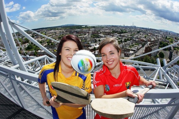 Camogie stars Susan Vaughan (Clare) and Julia White (Cork) at Croke Park