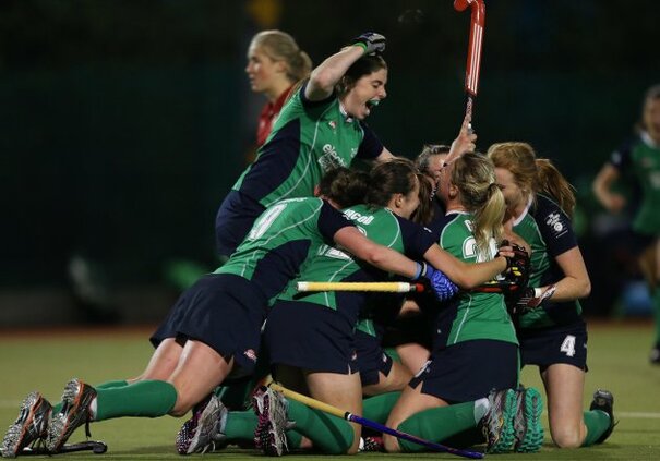 Ireland's Audrey O'Flynn is congratulated after scoring the winning goal against Belgium