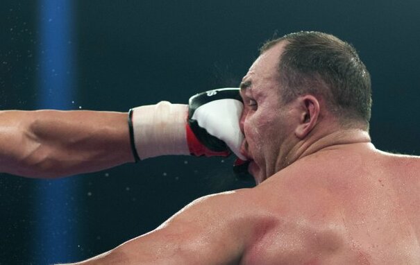 EBU (European) Heavyweight champion Kubrat Pulev of Bulgaria, left, and Alexander Ustinov of Belarus, right