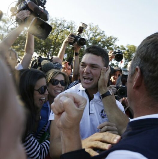 Europe's Martin Kaymer celebrates after winning the Ryder Cup