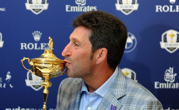 Europe captain Jose Maria Olazabal during a press conference at the Sofitel London, Heathrow Airport