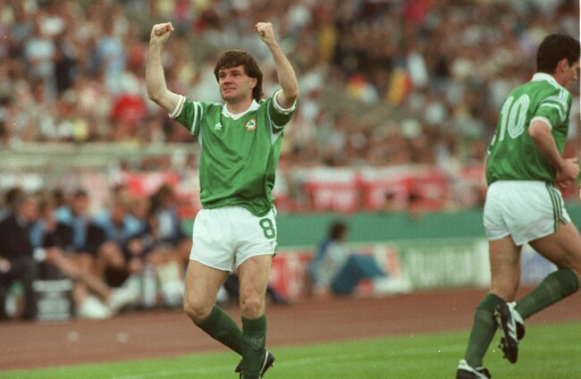 Check out this Irish team: Packie Bonner was the goalkeeper; Paul McGrath and Ronnie Whelan were the full backs, Kevin Moran and Mick McCarthy the centre-halves. Midfield comprised of Ray Houghton, Mark Lawrenson, Liam Brady and Tony Galvin while Frank Stapleton and John Aldridge played up front.