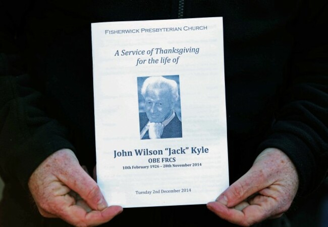 The Jack Kyle thanksgiving service took place today in Fisherwick Church in Belfast. Presseye / Jonathan Porter/INPHO