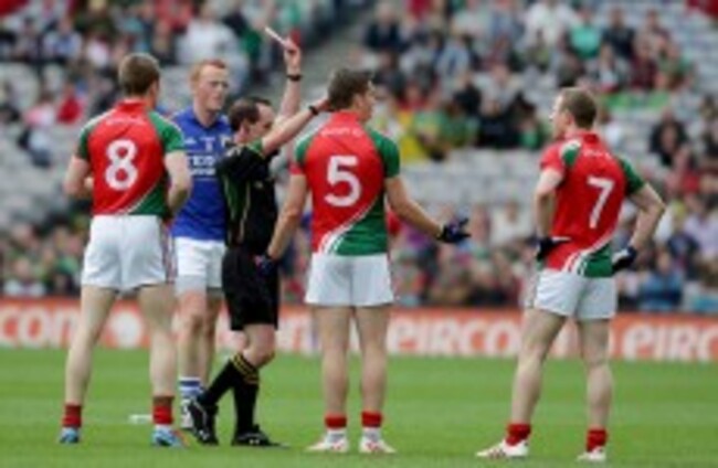 The Mayo defender was sent off during the first-half of yesterday’s game, but despite his team-mates trailing at half-time by four points, they still went on to earn a draw without him.
