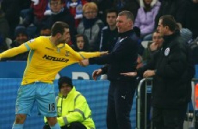 Barclays Premier League Crystal Palace Football fox in the box James McArthur Leicester City Nigel Pearson Premier League Sideline Cut UK Football