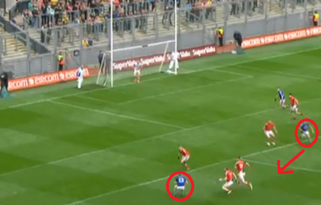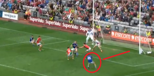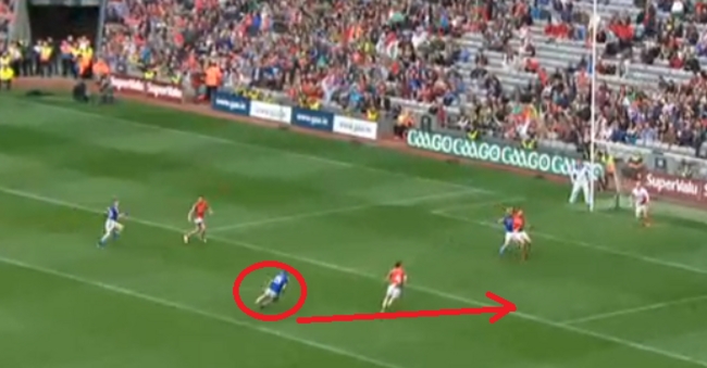 When O’Brien approached goal, O’Donoghue darted out to make himself available after O’Brien had sucked the Mayo defenders towards him.