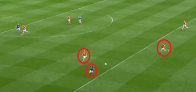 O’Donoghue’s clever running helped him score but the point owed much to the creativity of Stephen O’Brien. The wing-forward’s direct line of running caused huge problems for Cork in the Munster final and he replicated that move in the 5th minute last Sunday as he went clear of Colm Boyle from 50 yards out.
