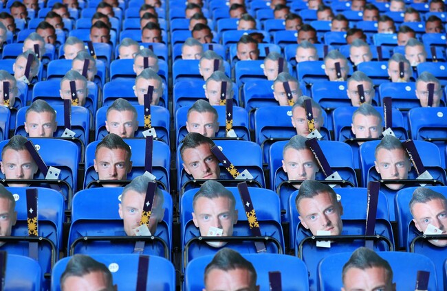 Pictures circulating on social media showed rows of Vardy masks placed on the blue seats at Leicester’s King Power Stadium ahead of their home game with Everton.