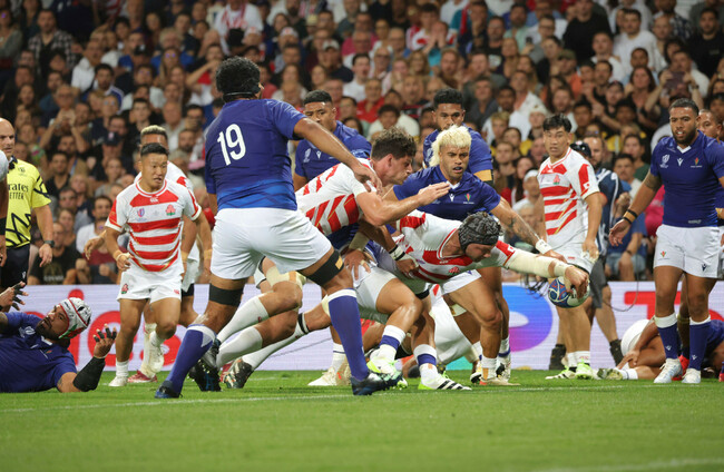 Japan emulated Samoa by taking the lineout-maul route. Captain Himeno drove over to score.