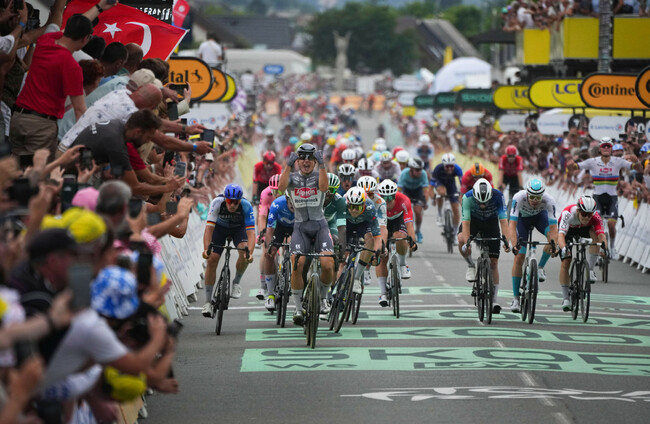 The sprint finish meant no changes at the top of the general classification, with Tadej Pogacar leading by 33 seconds from Remco Evenepoel, and defending champion Jonas Vingegaard 75 seconds down before Wednesday’s return to the mountains and a stage to the ski resort of Le Lioran.