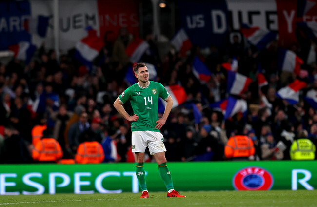 JAYSON MOLUMBY cut a frustrated figure after seeing Ireland suffer a narrow defeat at the hands of France in their opening Euro 2024 qualifier last night.