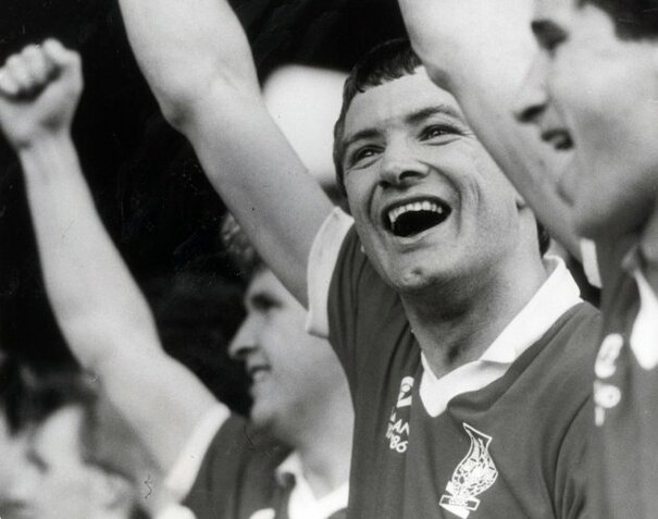 JBM held aloft after winning the '82 Munster title.