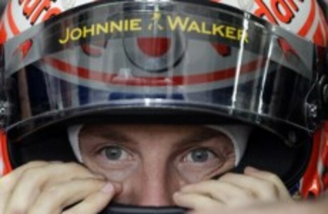 McLaren driver Formula One champion Jenson Button of Britain fits his helmet during the second free practice for the Brazilian Formula One Grand Prix at the Interlagos race track yesterday. Silvia Izquierdo/AP/Press Association Images