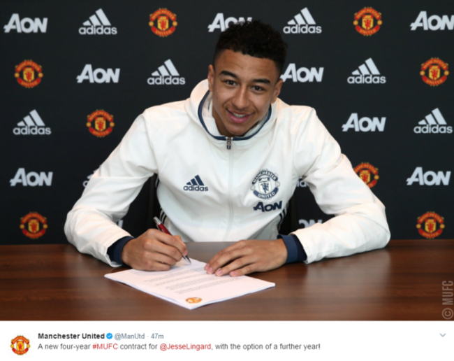 JESSE LINGARD HAS signed a new four-year contract with Manchester United, the club have announced, in a deal thought to be worth £100,000 (€120,000) per week.