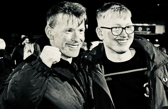 Jody Gormley with son James after Trillick won the 2023 Tyrone championship.