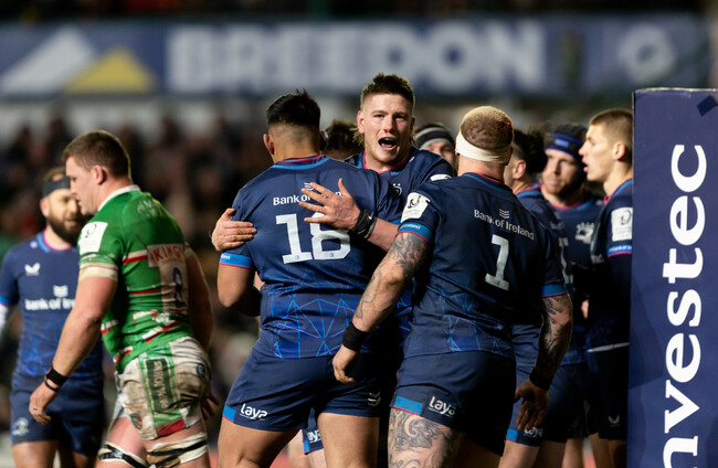 Yesterday, he powered over to score Leinster’s first try at Welford Road and thought he had added a second when he showed an impressive turn of pace to race home from the halfway line in the second half – only for the play to be called back for a Leicester penalty.