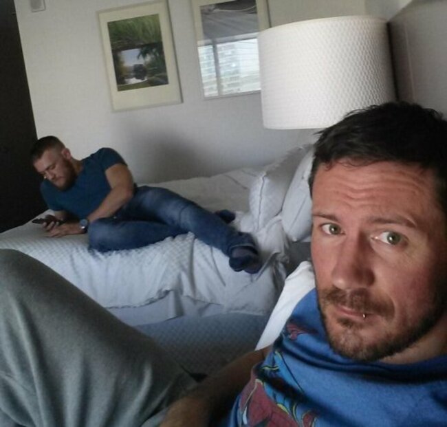 Kavanagh and McGregor chilling out in their Boston hotel room. Credit: Twitter/John_Kavanagh