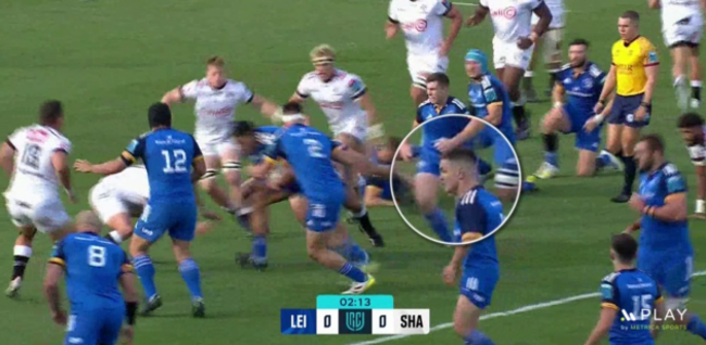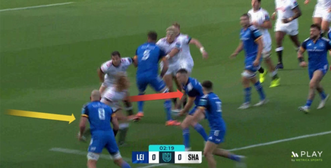 With Ruddock also reacting to the situation well by shuffling wider and holding his depth, it means Leinster are now well set up to strike at the Sharks.