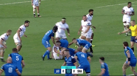 As Jenkins, Molony, and Porter move into position, we can see that Sexton is back scanning the Sharks defence and also assessing the other Leinster options around him…