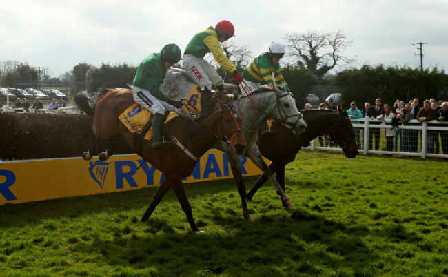 Tony McCoy onboard Gilgamboa (right) clears the last with Giitane Du Berlais, ridden by Ruby Walsh, (left) and Smashing, ridden by JJ Burke, on the way to winning the Ryanair Gold Cup. Donall Farmer / INPHO