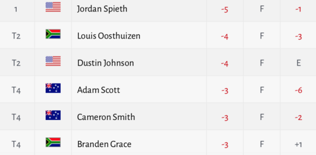 While Spieth teed off on his final hole, Johnson rolled in a birdie on 17 to join him in the lead on four-under-par.