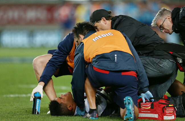 Uelese had to be helped from the field early in the second half of the Rebels’ 20-10 win in Auckland in the Super Rugby match on Saturday.