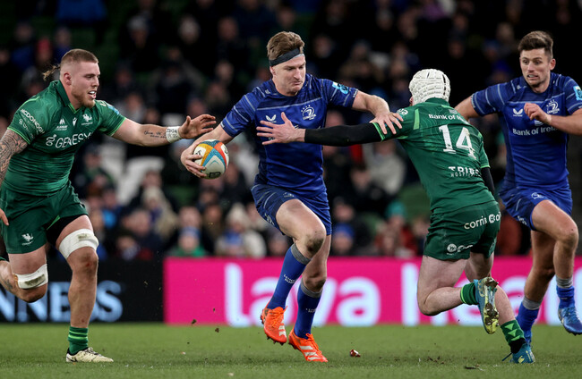 With Bundee Aki closely watching him throughout, Leinster used Barrett as a decoy runner as Ross Byrne slipped Andrew Osborne in for the game’s opening try. He provided the pass that sent Charlie Tector through for Leinster’s second. He delivered an important hit on Shane Jennings as Connacht chased a late winning score. He then combined nicely with Tector down the wing in the passage leading to Leinster’s game-clinching penalty.