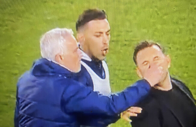 JOSE MOURINHO GRABBED rival manager Okan Buruk’s face amid wild scenes at the end of Fenerbahce’s 2-1 Turkish Cup defeat against rivals Galatasaray.