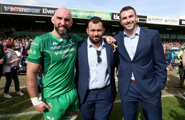 Connacht icons John Muldoon with JP Cooney and Andrew Browne in 2018.