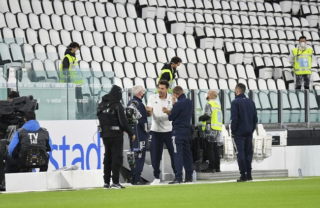 Gianluigi Buffon converses with people on the pitch. Tano Pecoraro/LaPresse