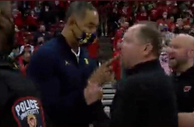 Here's really good raw video of the aftermath of #Michigan and #Wisconsin. You can clearly hear Juwan Howard say "I'll remember that" to Greg Gard prior to the altercation.